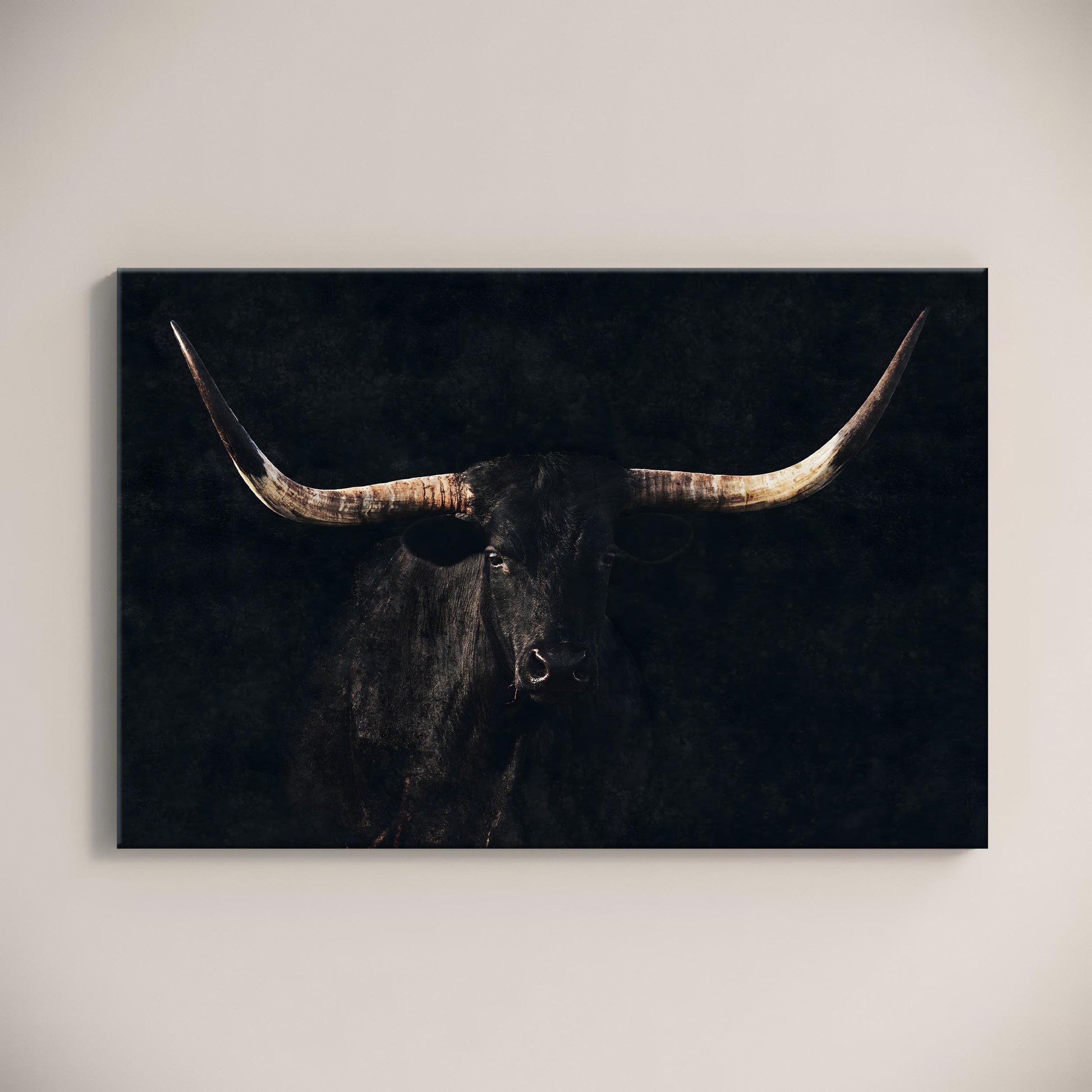 Dramatic Texas Longhorn poster ¨C rustic western art for living room or bedroom wall decor.