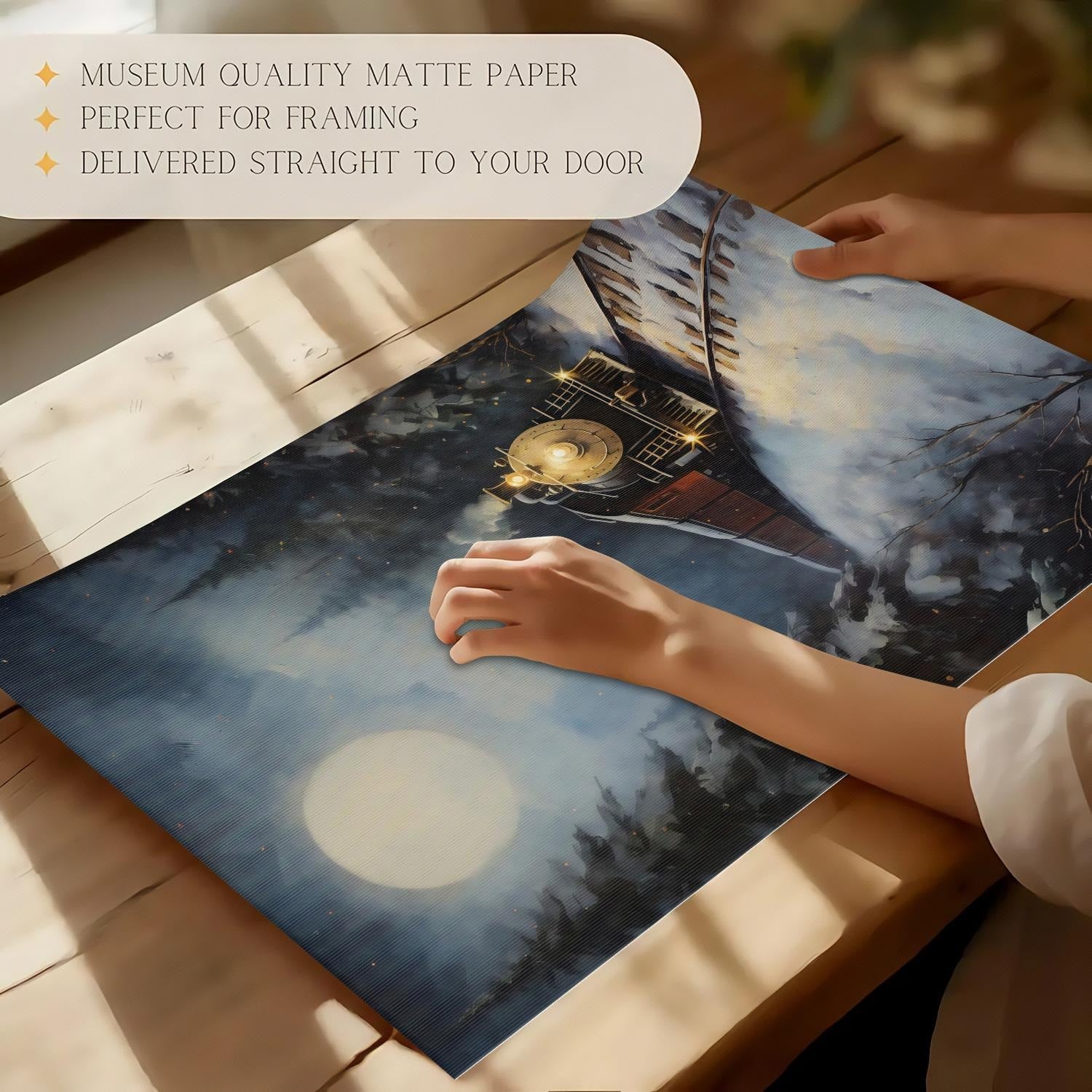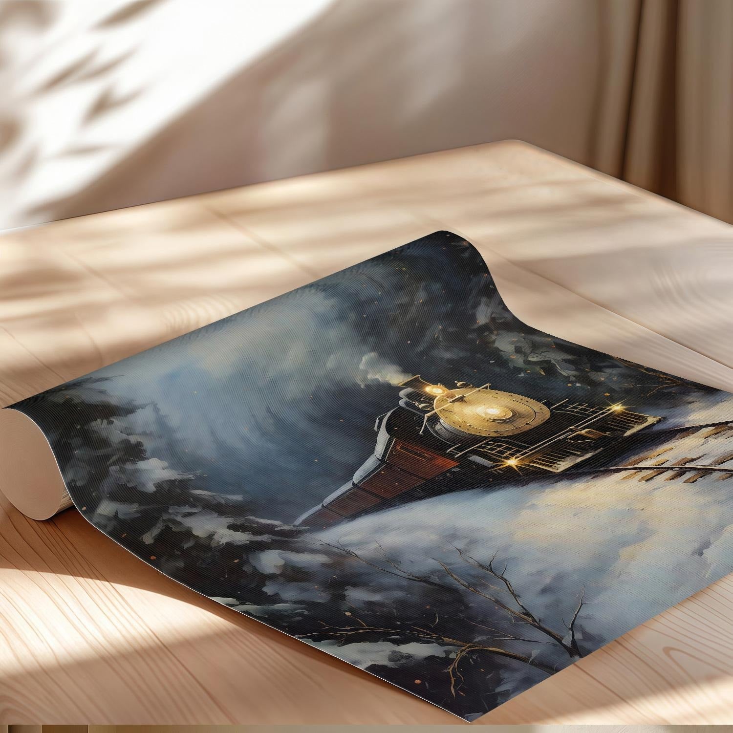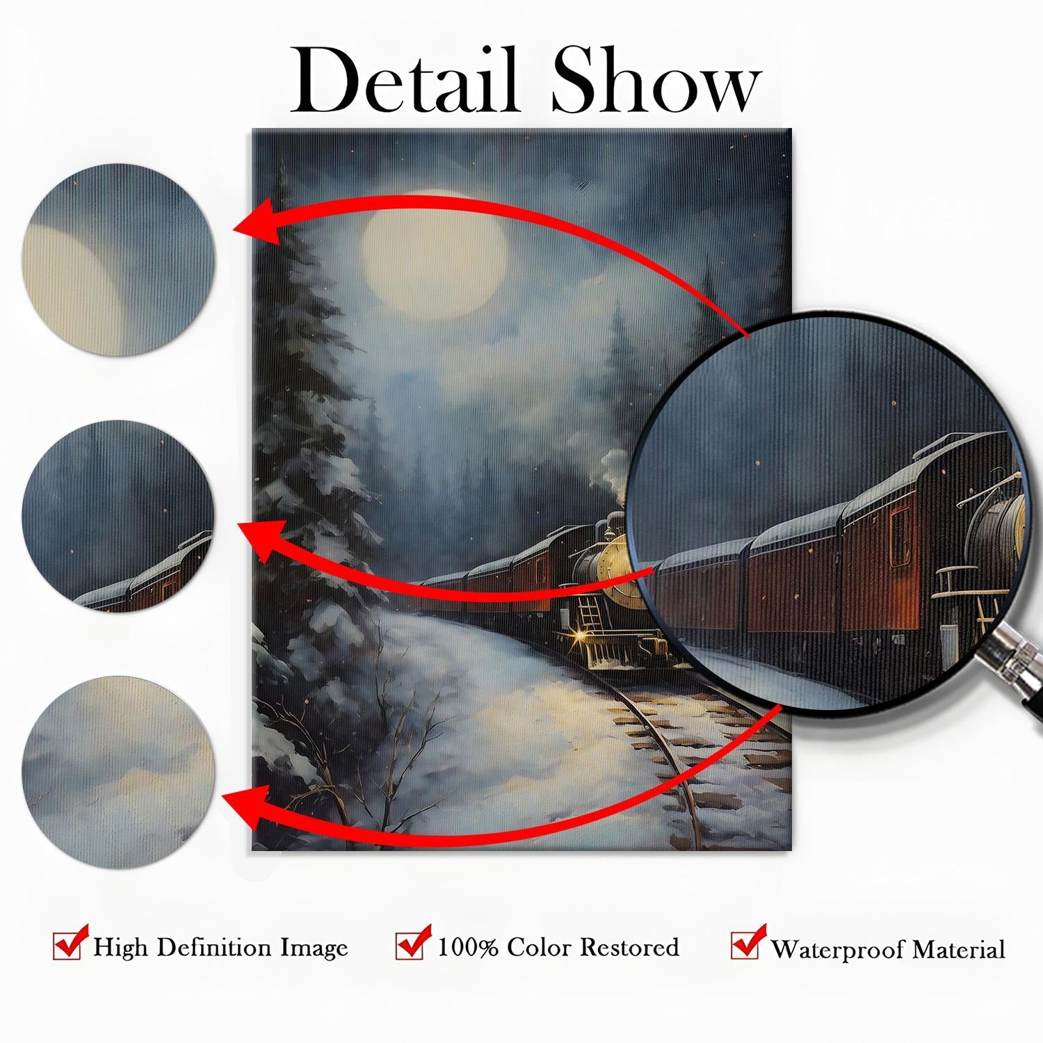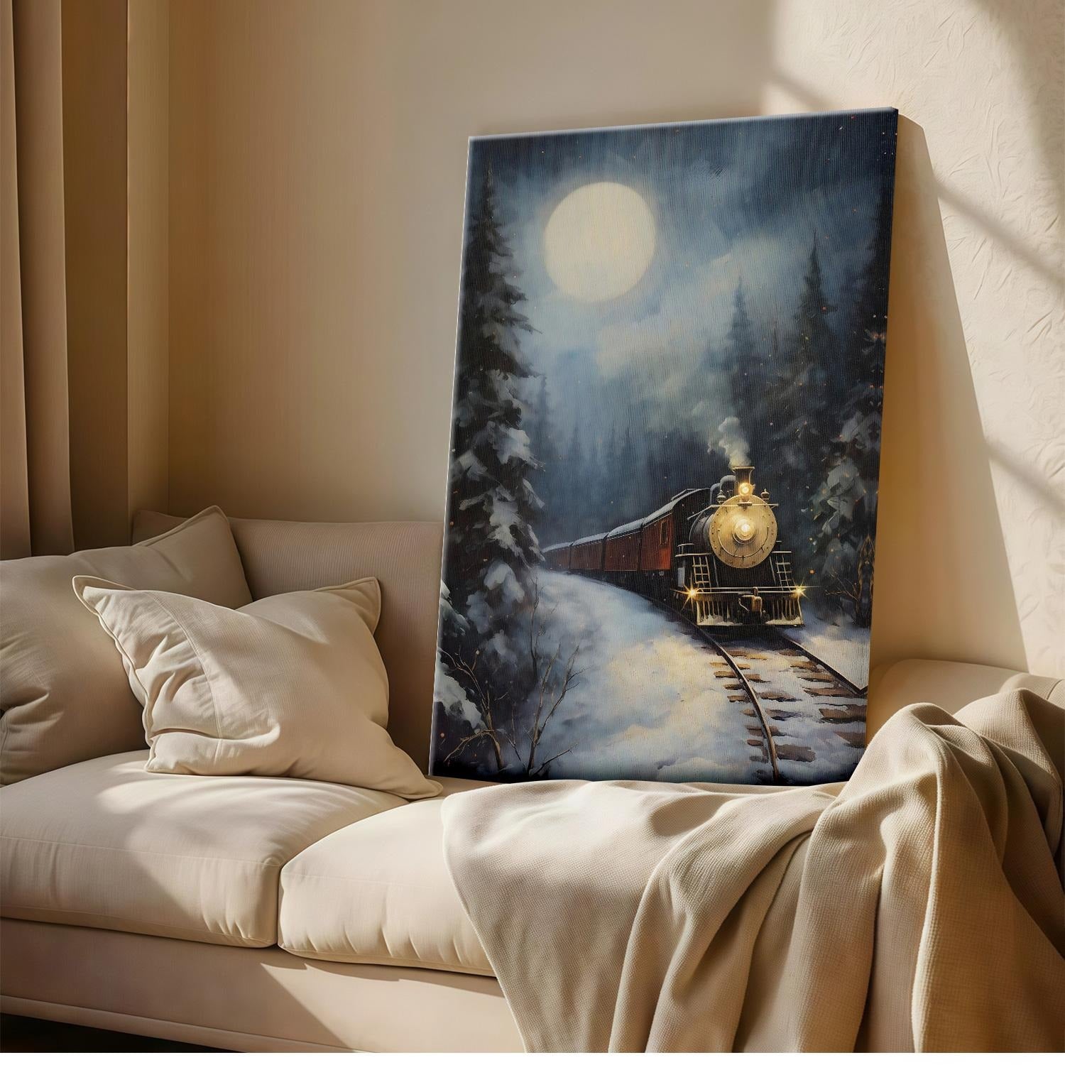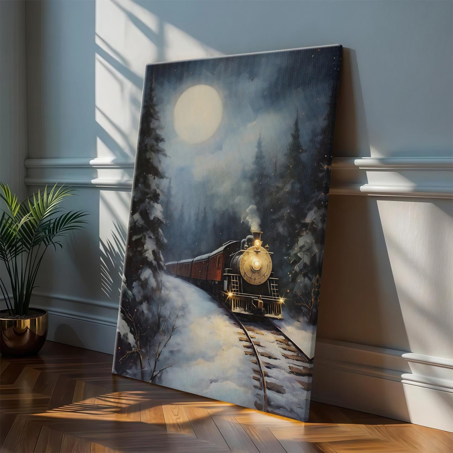 Classic vintage Christmas train wall art ¨C nostalgic winter decor perfect for family room or gifting.
