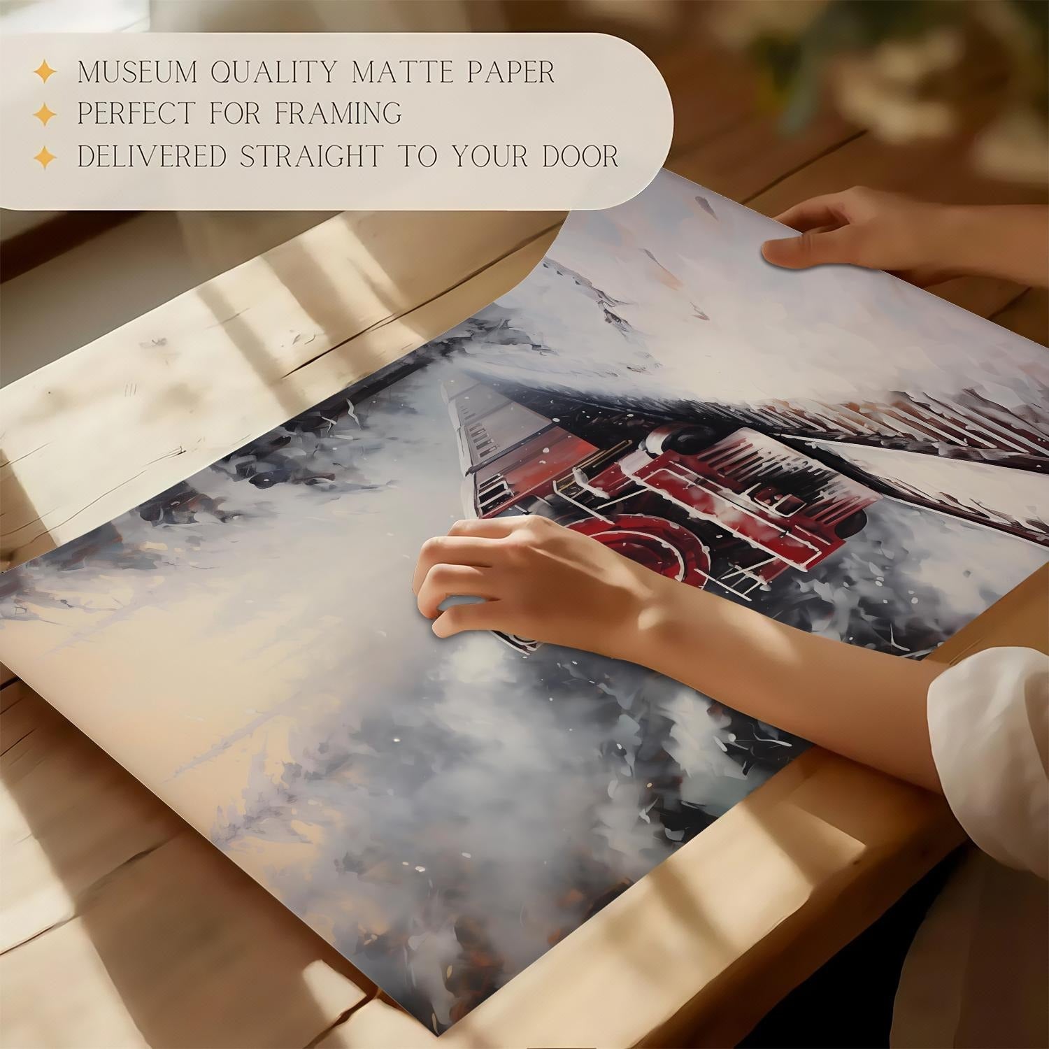Retro train poster celebrating Christmas journeys ¨C cozy winter home decor and perfect gift.