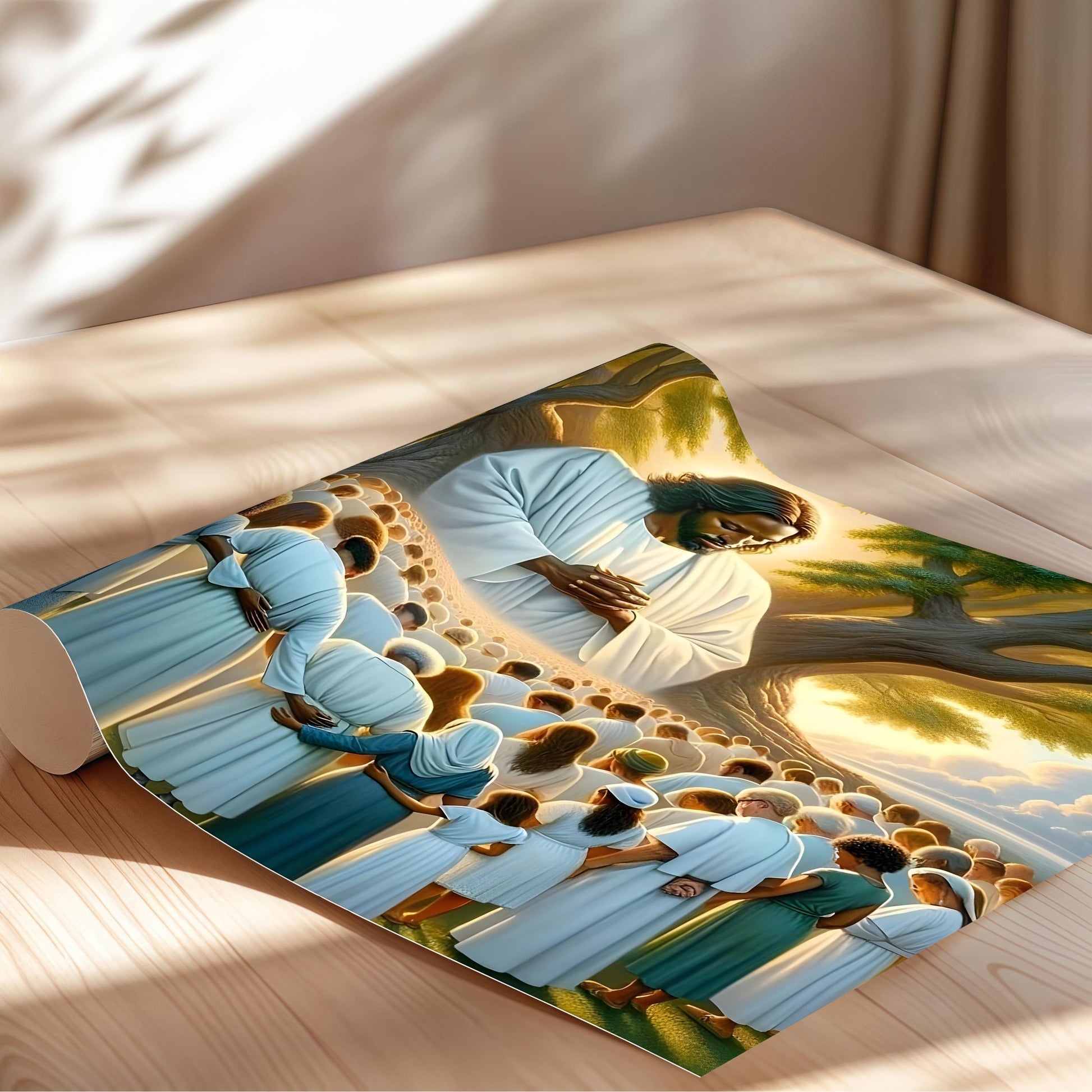Modern African American Christian wall art ¨C Jesus and followers print for spiritual and cultural decor.