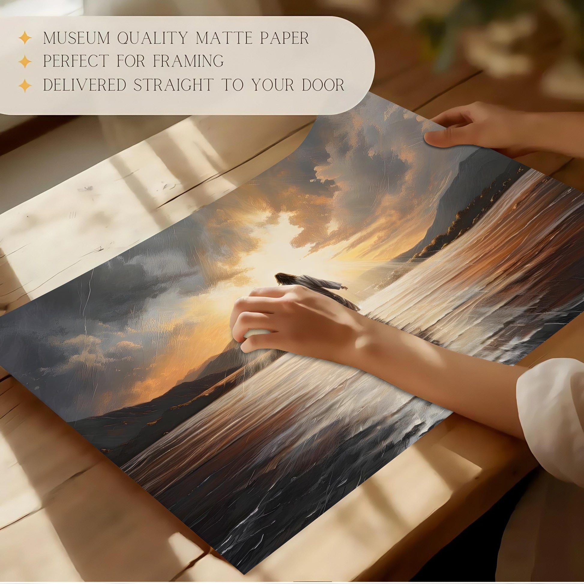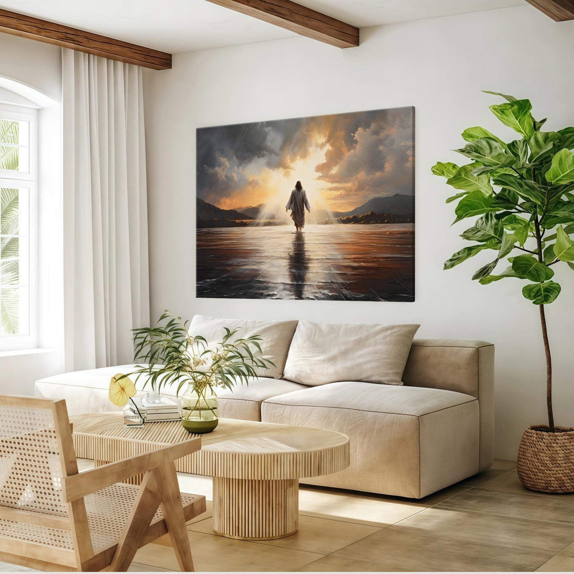 Inspirational Christian art symbolizing faith over fear ¨C modern Jesus wall decor for home.