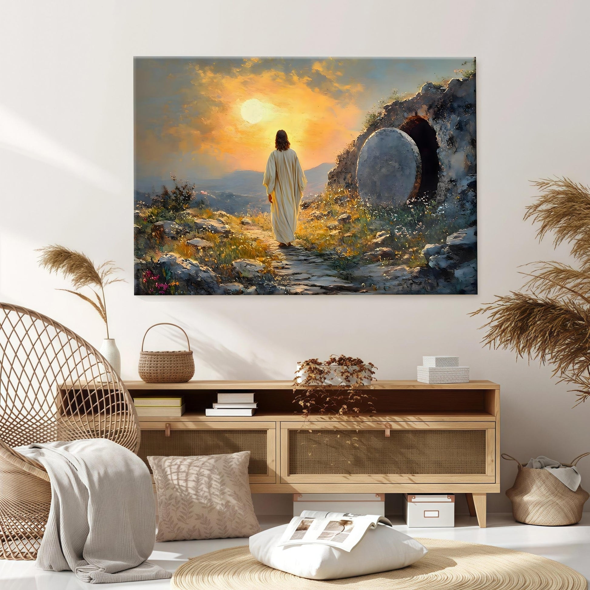 Modern Christian wall art featuring ¡°He Is Risen¡± ¨C perfect Easter decoration and spiritual home gift.