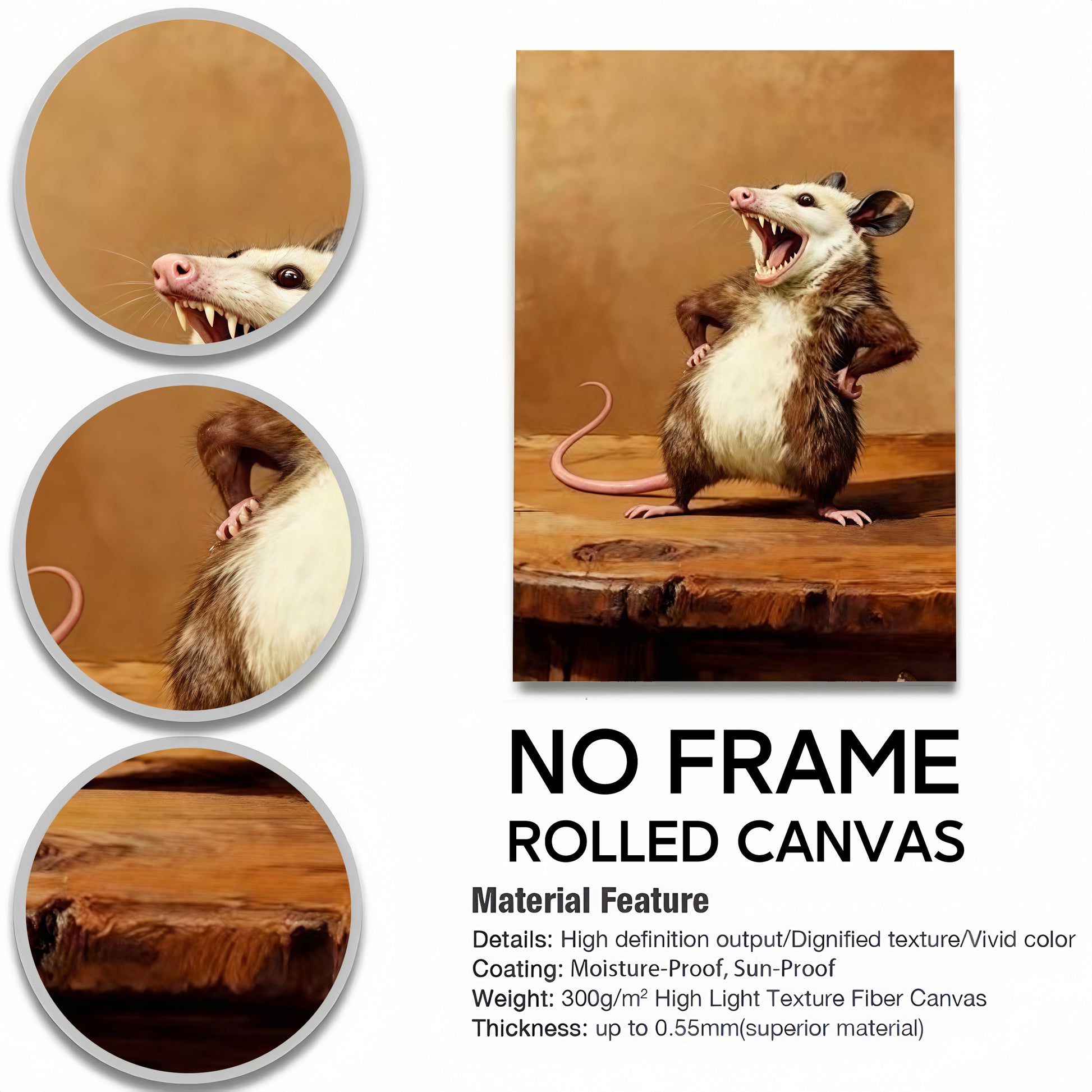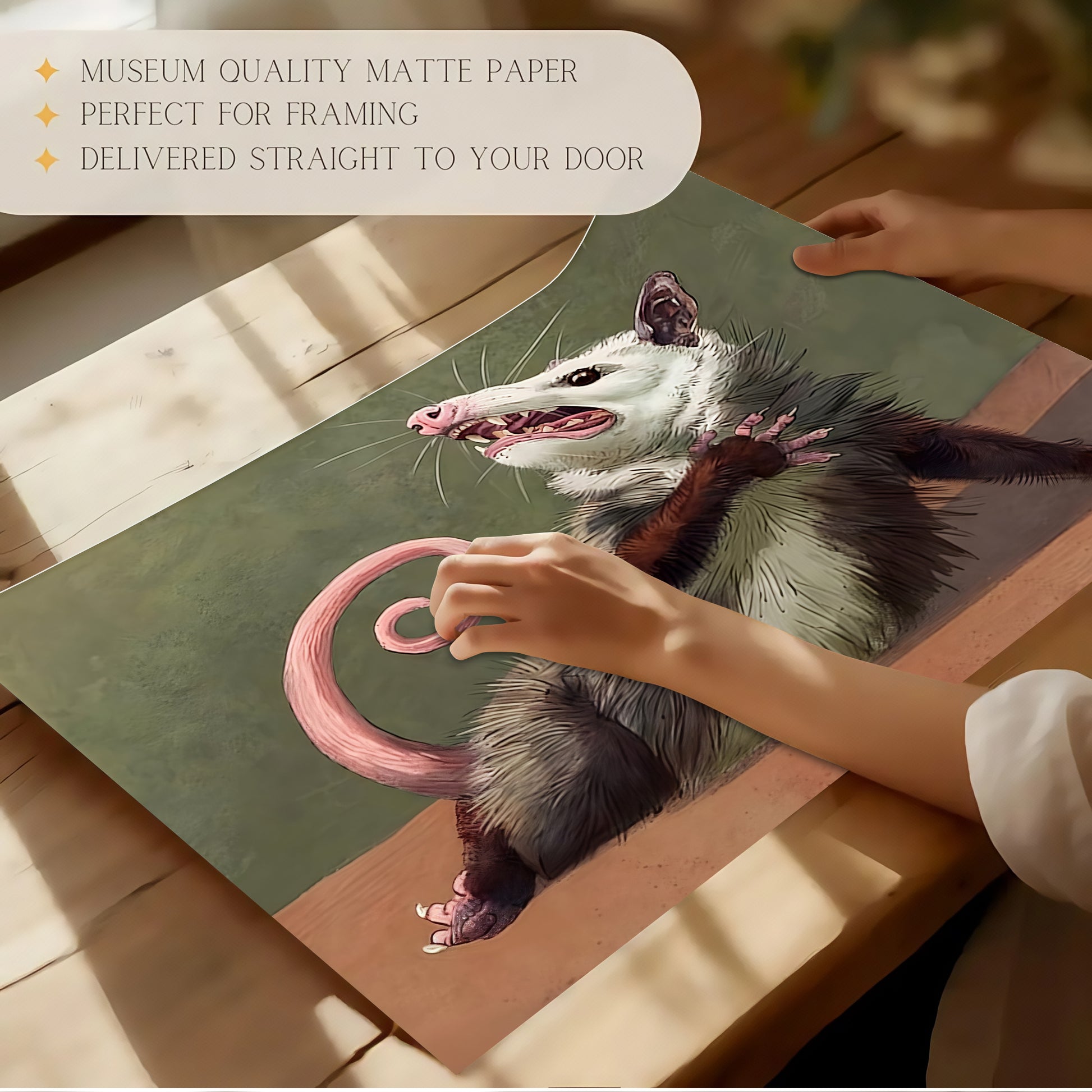 Why be normal when you can be a possum? Add a serious dose of serotonin to your walls with our Funny Opossum Canvas Collection. Whether it's the "seductive" pose or the pure joy of sitting on a stack of cheese, these prints celebrate the internet's favorite "Trash Cat" in all its glory.